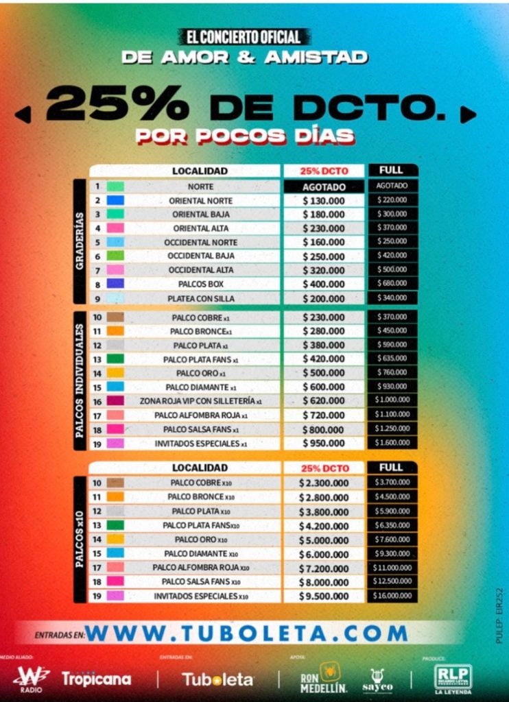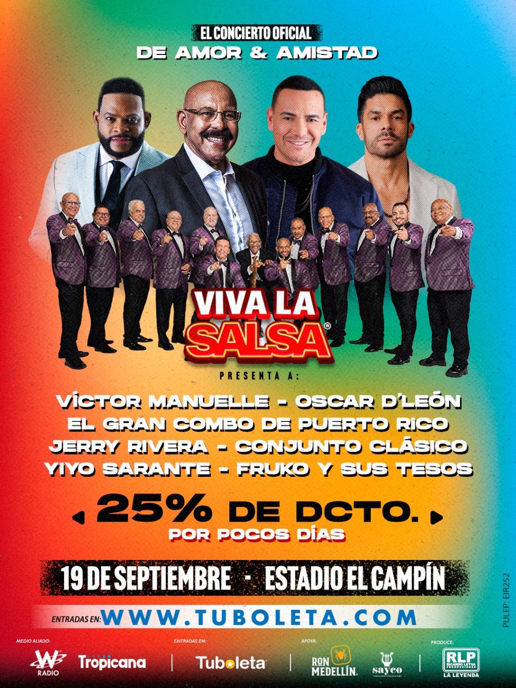 ¡LOS SALSEROS DE BOGOTÁ TIENEN UNA CITA DE ‘AMOR Y AMISTAD’! ¡MÁS DE 25 MIL PERSONAS YA TIENEN SU BOLETA PARA VIVA LA SALSA! 19 DE SEPTIEMBRE, ESTADIO EL CAMPÍN, CON: EL GRAN COMBO DE PUERTO RICO, VÍCTOR MANUELLE, OSCAR D´LEÓN, JERRY RIVERA, YIYO SARANTE, EL CONJUNTO CLÁSICO, FRUKO Y SUS TESOS 25% DE DESCUENTO HASTA EL 15 DE SEPTIEMBRE EN WWW.TUBOLETA.COM