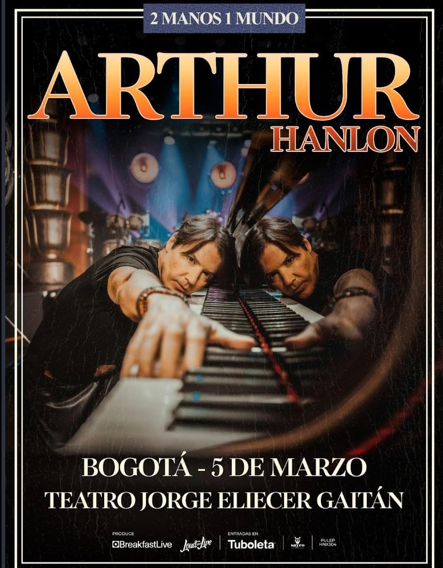 El aclamado pianista, compositor y arreglista Arthur Hanlon, reconocido como la figura más influyente de la música instrumental latina, anuncia su esperado regreso a Colombia como parte de su gira por su álbum “2 MANOS 1 MUNDO”, con un concierto íntimo y profundamente emocional en el Teatro Jorge Eliécer Gaitán, este 5 de marzo. Será una noche donde su virtuosismo, su sensibilidad y su emblemático piano azul se encontrarán con el público colombiano en un formato cercano, personal y lleno de magia.Arthur Hanlon es el único pianista en la historia en llegar al No. 1 de Billboard en las listas latinas, un logro que lo consolida como una figura irrepetible dentro del panorama musical. Nacido en Detroit y formado en el Manhattan School of Music, Hanlon encontró su hogar artístico en la música latina, creando un lenguaje propio que combina la sofisticación clásica, la fuerza del jazz, la energía urbana de Detroit y los ritmos que descubrió en Spanish Harlem.Su trayectoria incluye colaboraciones con Marc Anthony, Laura Pausini, Juanes, Luis Fonsi, Myriam Hernández, Sergio Vallín, Ricardo Montaner, Carlos Vives, Goyo, Manuel Medrano, Fonseca entre muchos otros.