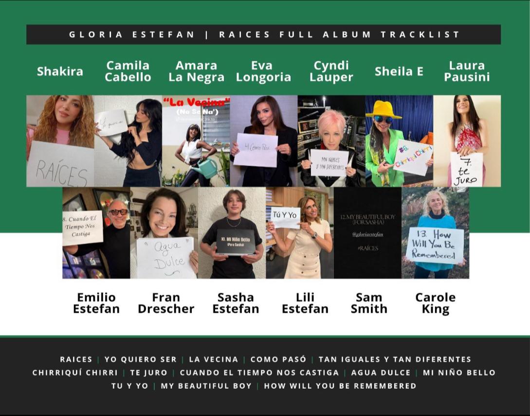 GLORIA ESTEFAN REÚNE UN ELENCO ESTELAR PARA REVELAR LA LISTA DE CANCIONES DE SU ESPERADO ÁLBUM RAÍCES