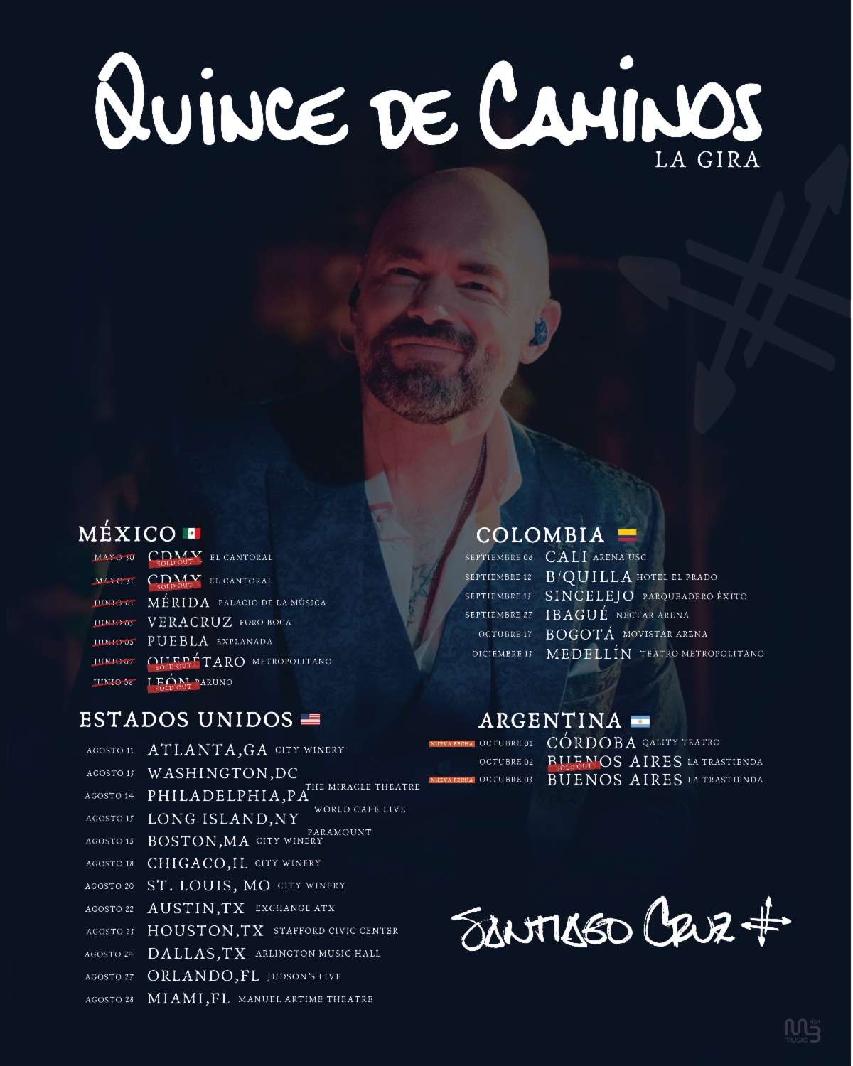 SANTIAGO CRUZ TRIUNFA EN MÉXICO CON “QUINCE DE CAMINOS, LA GIRA” Y MARCA UN HITO EN SU CARRERA CON VARIOS CONCIERTOS SOLD OUT EN SU PASO POR EL PAÍS AZTECA![]() EL CANTAUTOR COLOMBIANO CONTINÚA CELEBRANDO LOS 15 AÑOS DEL ÁLBUM QUE TRANSFORMÓ SU CARRERA, “CRUCE DE CAMINOS”, CON LA GRABACIÓN DE UN DOCUMENTAL QUE SE ESTRENARÁ EN 2026 Y QUE REGISTRA CADA PASO DE ESTA IMPORTANTE CONMEMORACIÓN |