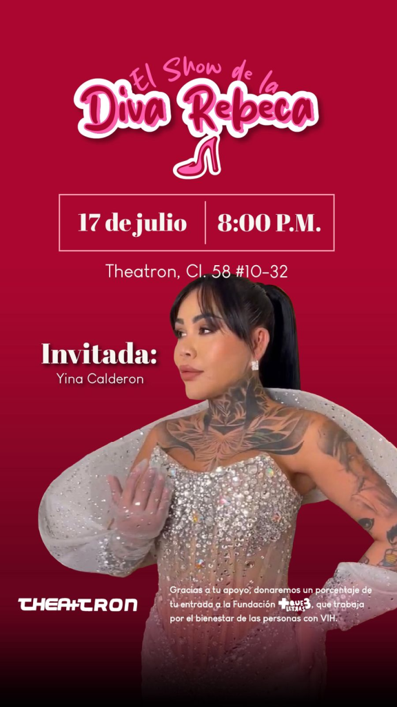 Será este jueves 24 de abril a las 8:00 p.m., cuando Theatron, el templo de la rumba y la diversidad en Bogotá, se vista de lentejuelas, micrófonos afilados y carcajadas sin censura para recibir el primer show en vivo de Diva Rebeca. Una experiencia sin precedentes que mezcla comedia irreverente, entrevistas explosivas y sorpresas sobre el escenario, prometiendo subir la temperatura de la noche capitalina y arrancar carcajadas (y verdades) a quemarropa.