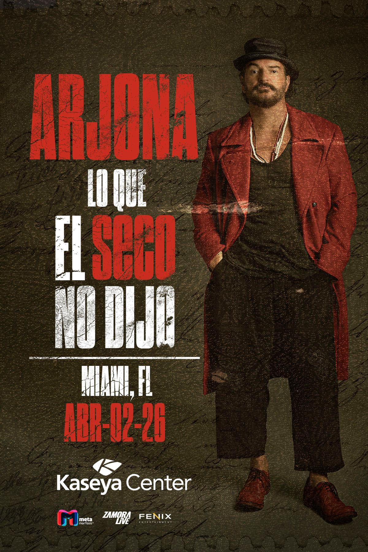 | Ricardo Arjona confirma una cita imperdible con el público del sur de Florida: el próximo 2 de abril de 2026 en el Kaseya Center de Miami. El anuncio llega en medio de un momento histórico para el cantautor guatemalteco, quien recientemente agotó, en tiempo récord, las entradas para dos presentaciones consecutivas en el legendario Madison Square Garden de Nueva York. Este doble “sold out” refuerza el impacto de “Lo Que el Seco No Dijo” – La Gira, una propuesta artística que ha generado una respuesta inmediata y arrolladora desde el momento de su lanzamiento, y que se ha convertido en uno de los eventos musicales más esperados. Para muchos, no sólo se trata de un impactante éxito comercial, sino de la reivindicación de la música con contenido, representada por uno de los pocos artistas que, a pesar de las modas, se ha mantenido fiel a lo que sabe hacer y lo defiende. Ricardo Arjona se reinventa nuevamente y ofrecerá a su público una puesta en escena que, como siempre, va más allá de un simple concierto musical para convertirse en una experiencia para los sentidos. “Lo Que el Seco No Dijo” – La Gira podría ser el grito de batalla de un público que quiere reencontrarse nuevamente con las canciones. El concierto en Miami promete un recorrido por sus más grandes éxitos y la energía de sus nuevas composiciones, en un montaje que, fiel a su sello personal, trasciende el formato tradicional de espectáculo para transformarse en un encuentro inolvidable. Las entradas para el concierto en el Kaseya Center estarán disponibles este viernes 15 de Agosto a las 10 de la mañana a través de ticketmaster.com. FECHAS RESIDENCIA DE RICARDO ARJONA EN GUATEMALA 2025“LO QUE EL SECO NO DIJO”Teatro Nacional Miguel Ángel Asturias Viernes 31 de octubre (SOLD OUT) Sábado 1 de noviembre (SOLD OUT) Domingo 2 de noviembre (SOLD OUT) Jueves 6 de noviembre (SOLD OUT) Viernes 7 de noviembre (SOLD OUT) Sábado 8 de noviembre (SOLD OUT) Domingo 9 de noviembre (SOLD OUT) Jueves 13 de noviembre (SOLD OUT) Viernes 14 de noviembre (SOLD OUT) Sábado 15 de noviembre (SOLD OUT) Domingo 16 de noviembre (SOLD OUT) Jueves 20 de noviembre (SOLD OUT) Viernes 21 de noviembre (SOLD OUT) Sábado 22 de noviembre (SOLD OUT) Domingo 23 de noviembre (SOLD OUT) Jueves 27 de noviembre (NUEVA FECHA SOLD OUT) Viernes 28 de noviembre (NUEVA FECHA SOLD OUT) Sábado 29 de noviembre (NUEVA FECHA SOLD OUT) Domingo 30 de noviembre (NUEVA FECHA SOLD OUT) Jueves 4 de diciembre (NUEVA FECHA SOLD OUT) Viernes 5 de diciembre (NUEVA FECHA SOLD OUT) Sábado 6 de diciembre (NUEVA FECHA SOLD OUT) Domingo 7 de diciembre (NUEVA FECHA SOLD OUT) FECHAS RICARDO ARJONA EN NUEVA YORK 2026 Madison Square Garden Martes 11 de febrero (SOLD OUT)Miércoles 12 de febrero (SOLD OUT) FECHA RICARDO ARJONA EN MIAMI 2026 Kaseya Center Jueves 2 de abril (NUEVA FECHA) |