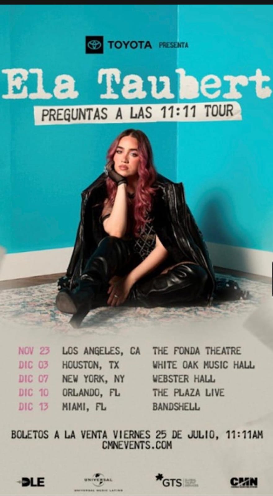 Próximamente, ELA se prepara para dar inicio a la etapa por Estados Unidos el 23 de noviembre en el Fonda Theatre de Los Ángeles. La gira por Estados Unidos, patrocinada por Toyota, incluirá paradas en Houston, Nueva York, Orlando y Miami. Con esta gira ELA TAUBERT demuestra que es una de las promesas del pop, capaz de emocionar a sus oyentes con unas letras que permiten a todos sentirse identificados